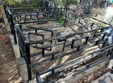Приехав на участок вновь, мы принялись за установку ограждения, предварительно прополов место захоронения и демонтировав старые памятник с цветником.
