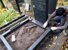 На этот раз клиент обратился к нам повторно – он попросил восстановить памятник на могиле, где мы сравнительно недавно сажали газон. Приехав на место захоронения мы оценили фронт работы: памятник действительно немного покосился, а балки цветника разъехались в разные стороны.